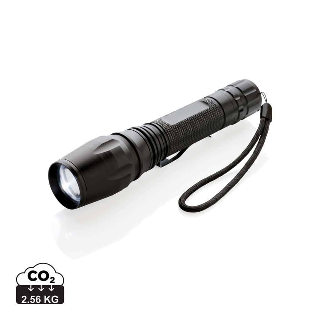 Super bright and tough 10W CREE led torch that can handle even the most difficult conditions. The durable aluminium torch is IPX 4 waterproof and shockproof up to 1 metre drop. The beam of the torch can be adjusted to focus or to light up a bigger area. With belt clip for carrying the torch. 250 lumen and working time of 6 hours. Includes batteries for direct use.