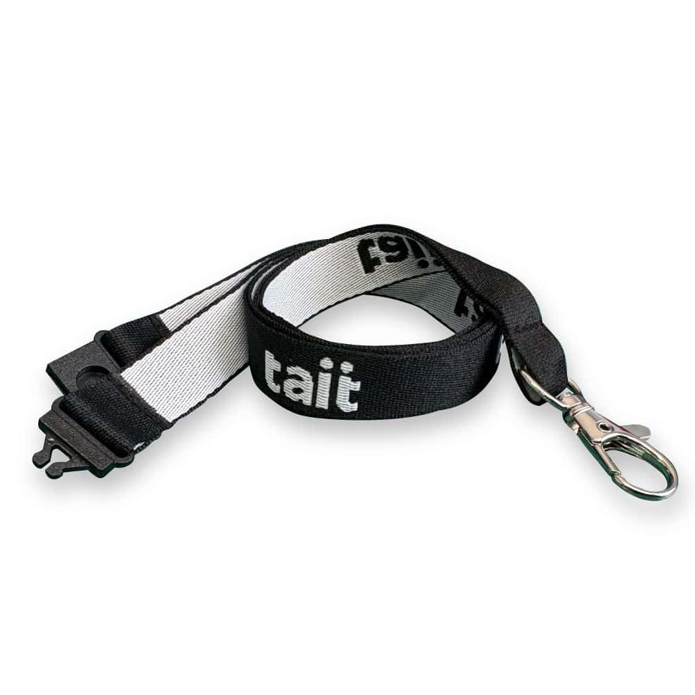A top-quality polyester lanyard with a jacquard woven design on 1 side. The design is woven into the front of the lanyard but also visible in reverse on the back. The durable material is both water and tear-resistant. NB: Prices are based on a simple woven design (subject to confirmation on sight of artwork). Woven set up costs also apply on repeat orders. Fitted with a black plastic safety break and metal trigger clip. Available in black and white or pantone matched. 3 standard sizes: 15/20/25mm. Optional extras: additional woven colours/alternative fittings. Lanyards help hold and display ID badges or security passes and carry small items like keys. They’re used day-to-day by many organisations and for all sorts of special occasions, from conferences and exhibitions to sports and entertainment events. This makes them an affordable and highly effective marketing tool.