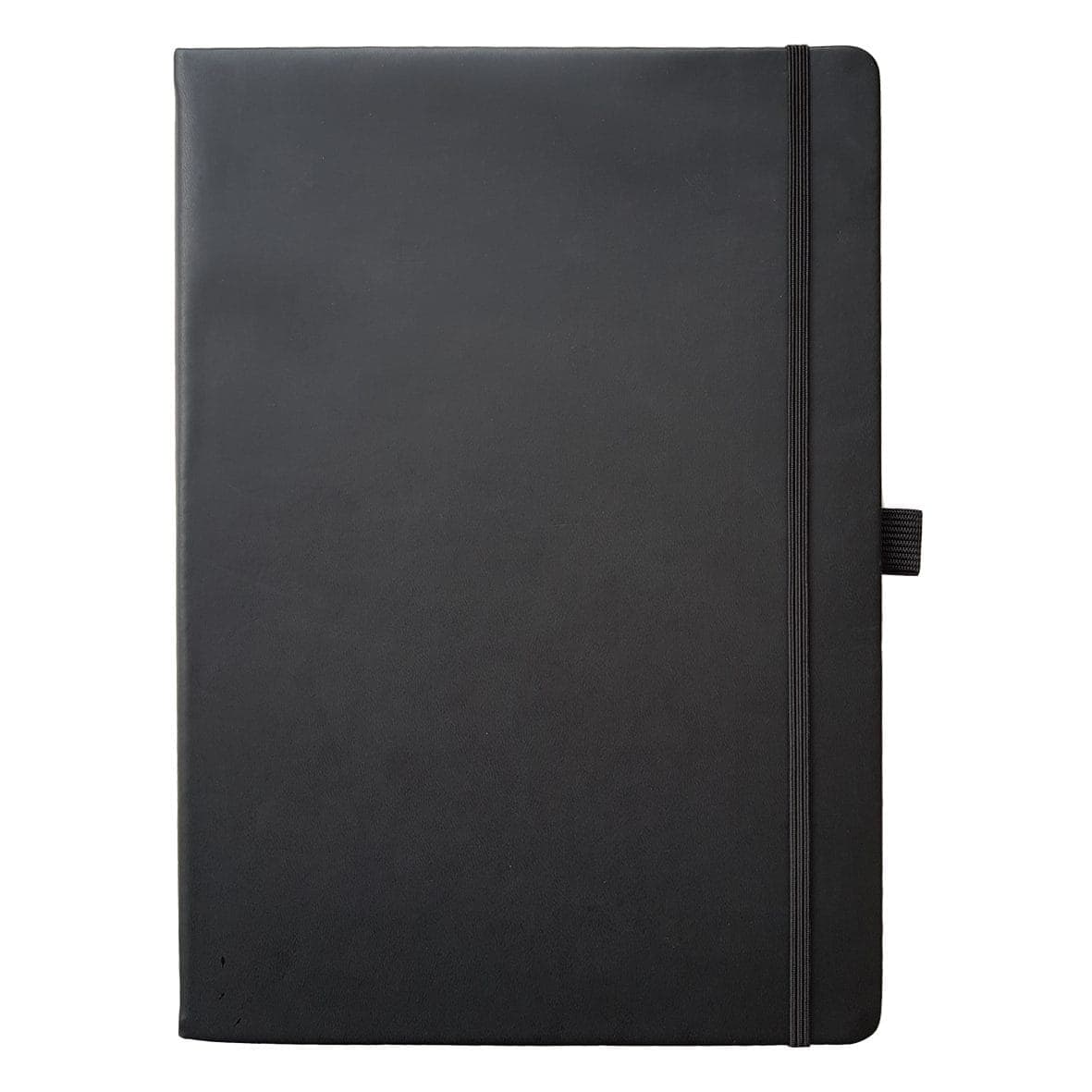 A4 case-bound journal notebook with soft touch cover, lined pages, elastic strap, pen loop and rear envelope pocket.