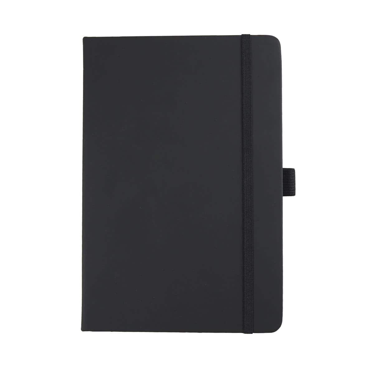 Ultimate A5 Notebook with a soft PU cover, 80 cream lined pages (160 sides), ribbon marker, elastic strap closure and pen loop. A high quality budget notebook.