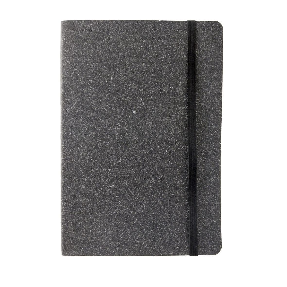 Eco-friendly soft recycled leather cover A5 notebook with matching colour elastic closure and rear envelope pocket. 96 sheets of recycled 80gsm paper inside available in natural or black. The notebook is supplied in a recycled card gift sleeve. Also available with a hard cover.