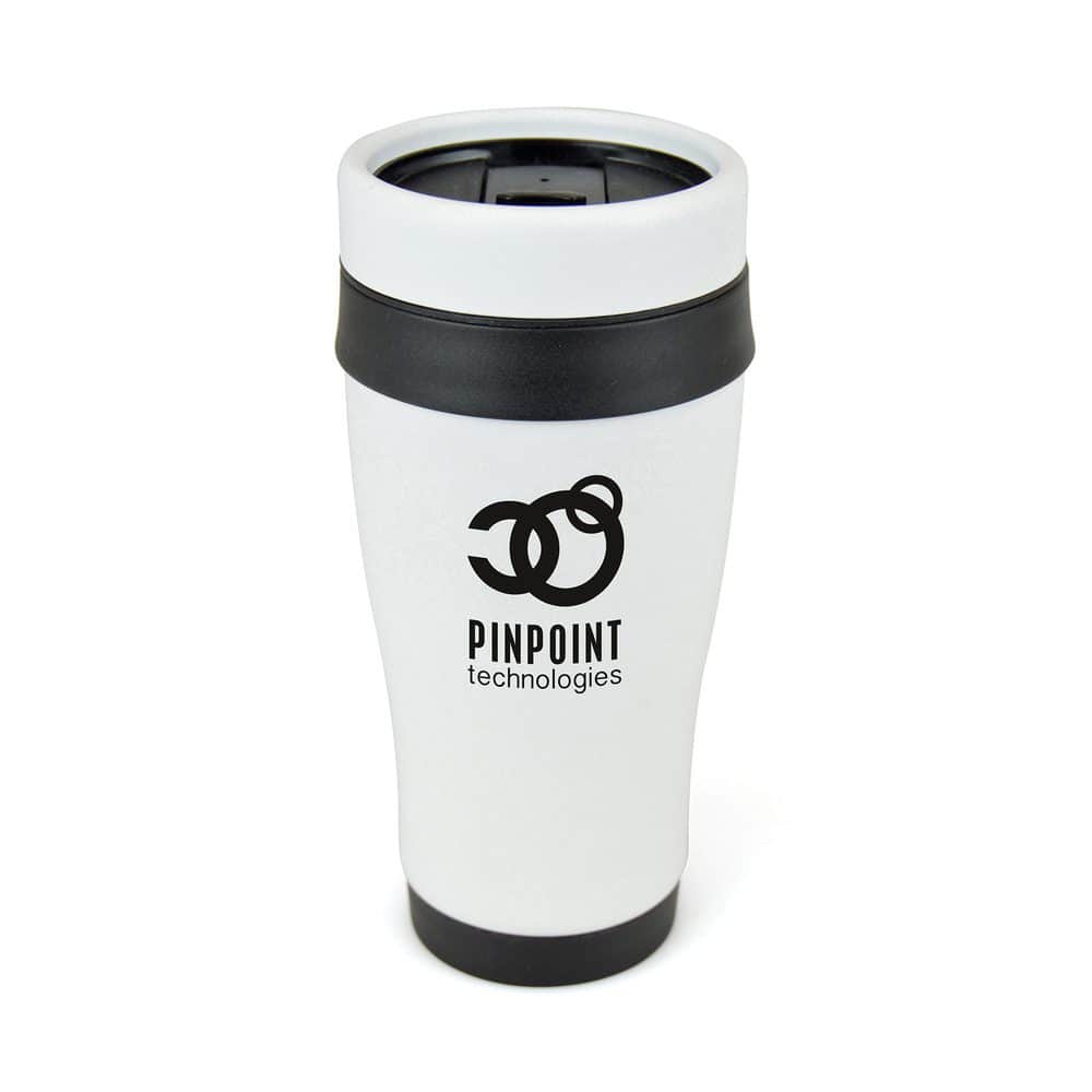 400ml double walled tumbler made from robust stainless steel and finished with a matt, white coating and black trim. Complete with screw top lid with secure slide sipper. The fresh white finish provides a clean look and the ideal blank canvas for your brand. (ABS plastic slider, PP plastic lid, inner body and bottom). BPA & PVC free.