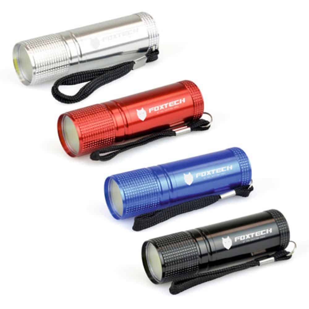 COB LED aluminium torch with black strap and push-button activation. New COB technology is highly efficient and super bright. Great for those with a love of camping and outdoor hobbies. Batteries included. EN71 approved.