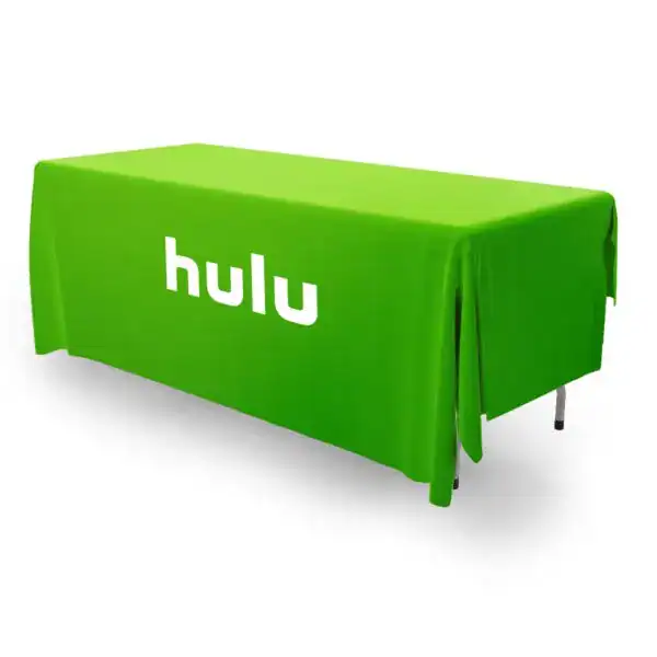 Whether it is for trade shows. Exhibitions, open days or any other social event, our branded tablecloths are a great marketing tool for attraction. Embark on the journey of personalisation as you create your own unique design, enjoy the flexibility of a full-print option. Whether it is a logo, tagline or domain, you can personalise your design however you like. Elevate your brand presence by having your own tablecloth with a unique print that creates an aesthetically pleasing centre piece and leaves an indelible mark on event attendees. It is a great cost-effective marketing tool as you can reuse this product if handled with care. As it printed onto polyester the strong fibres make it durable as well as being wrinkle and shrink resistant if taken care of (wash care included). This product includes an open back design giving you access to store any boxes or personal items under the table hidden from the view of others. This product is suitable for both indoor and outdoor use.