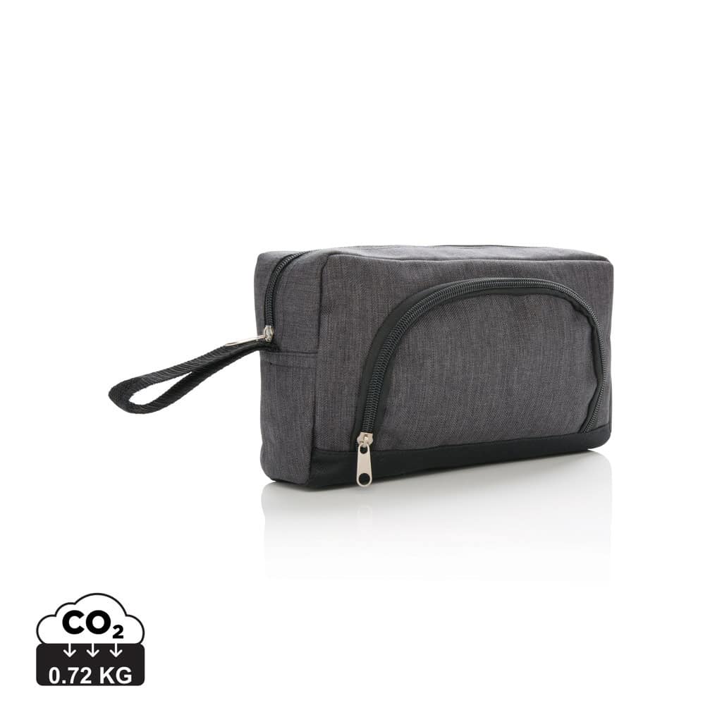 Two tone 600D polyester toiletry bag with enough space for all your beauty products and make-up. PVC free.