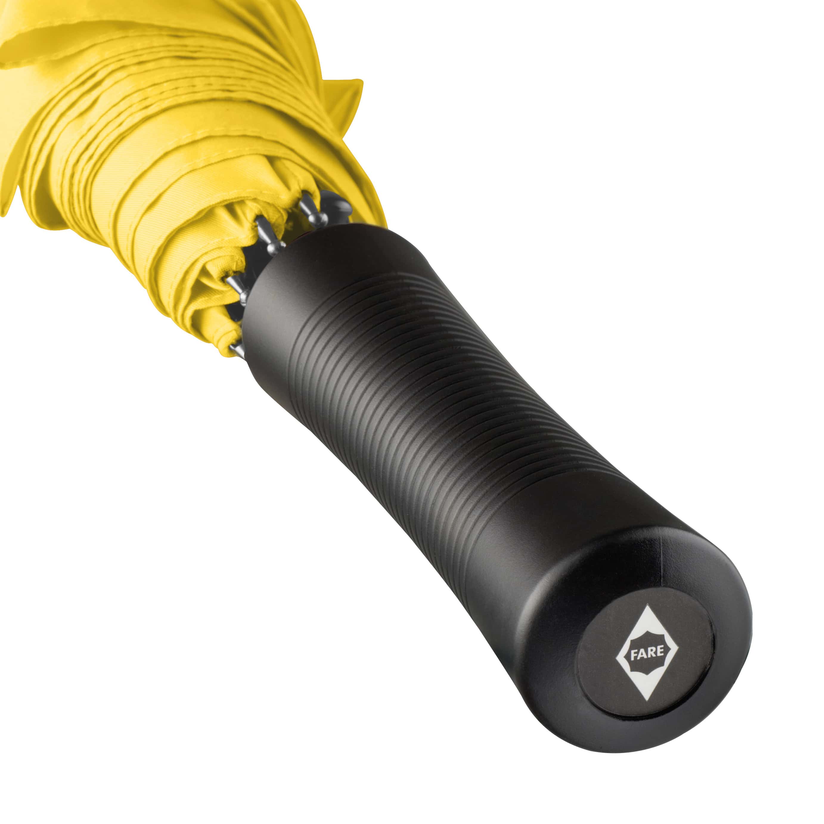 Convenient automatic function for quick opening, windproof features for higher flexibility and stability in windy conditions, flexible fibreglass ribs, straight dull black plastic handle with promotional labelling option, higher corrosion protection due to galvanized steel shaft