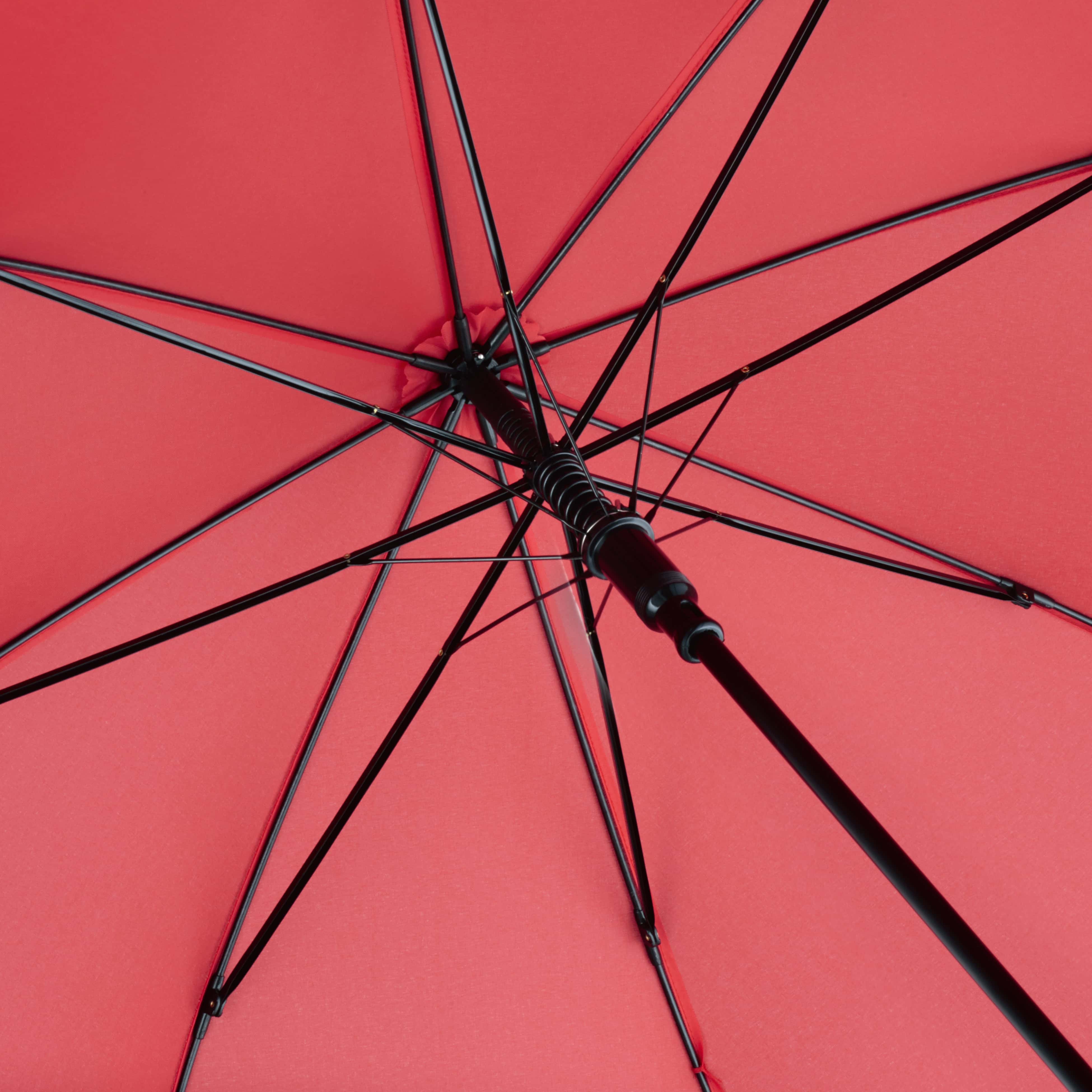 Convenient automatic function for quick opening, windproof features for higher flexibility and stability in windy conditions, flexible fibreglass ribs, dull black plastic crook handle, higher corrosion protection due to galvanized steel shaft. Also available as golf umbrella (art. 2359).