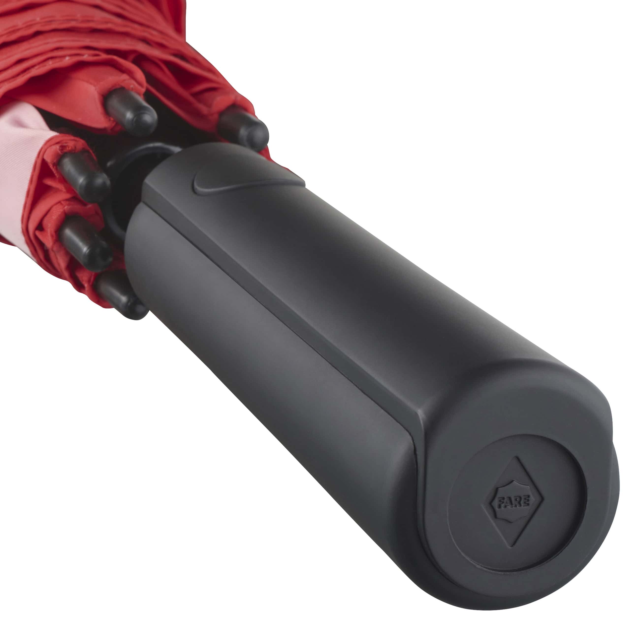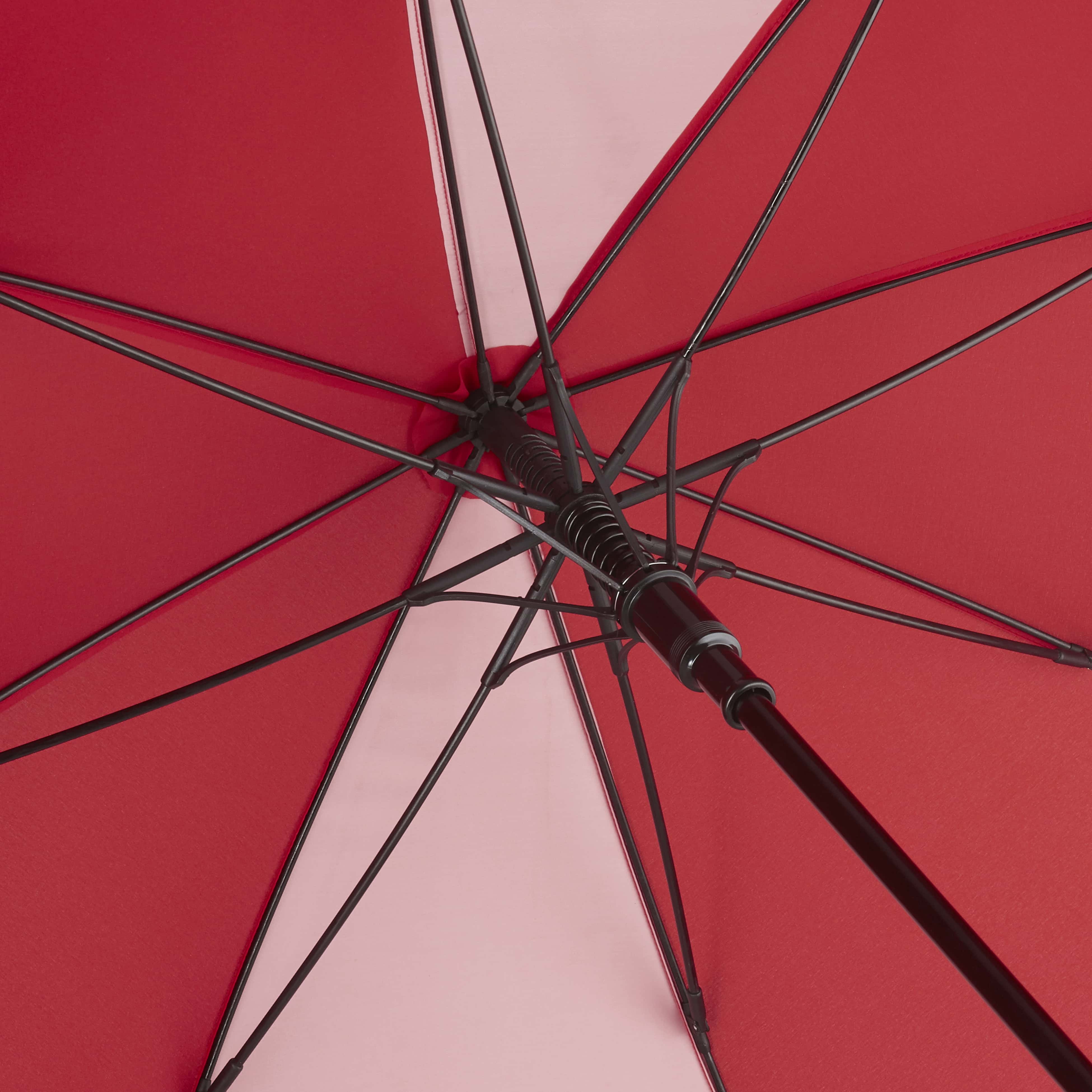 Convenient automatic function for quick opening, high-quality windproof system for maximum frame flexibility in stormy conditions, flexible fibreglass ribs, two panels and trendy piping with colour matching and trendy reflective coating, straight Soft-Feel handle with integrated pushbutton and promotional labelling option, higher corrosion protection due to galvanized steel shaft. Also available as mini umbrella (art. 5477).