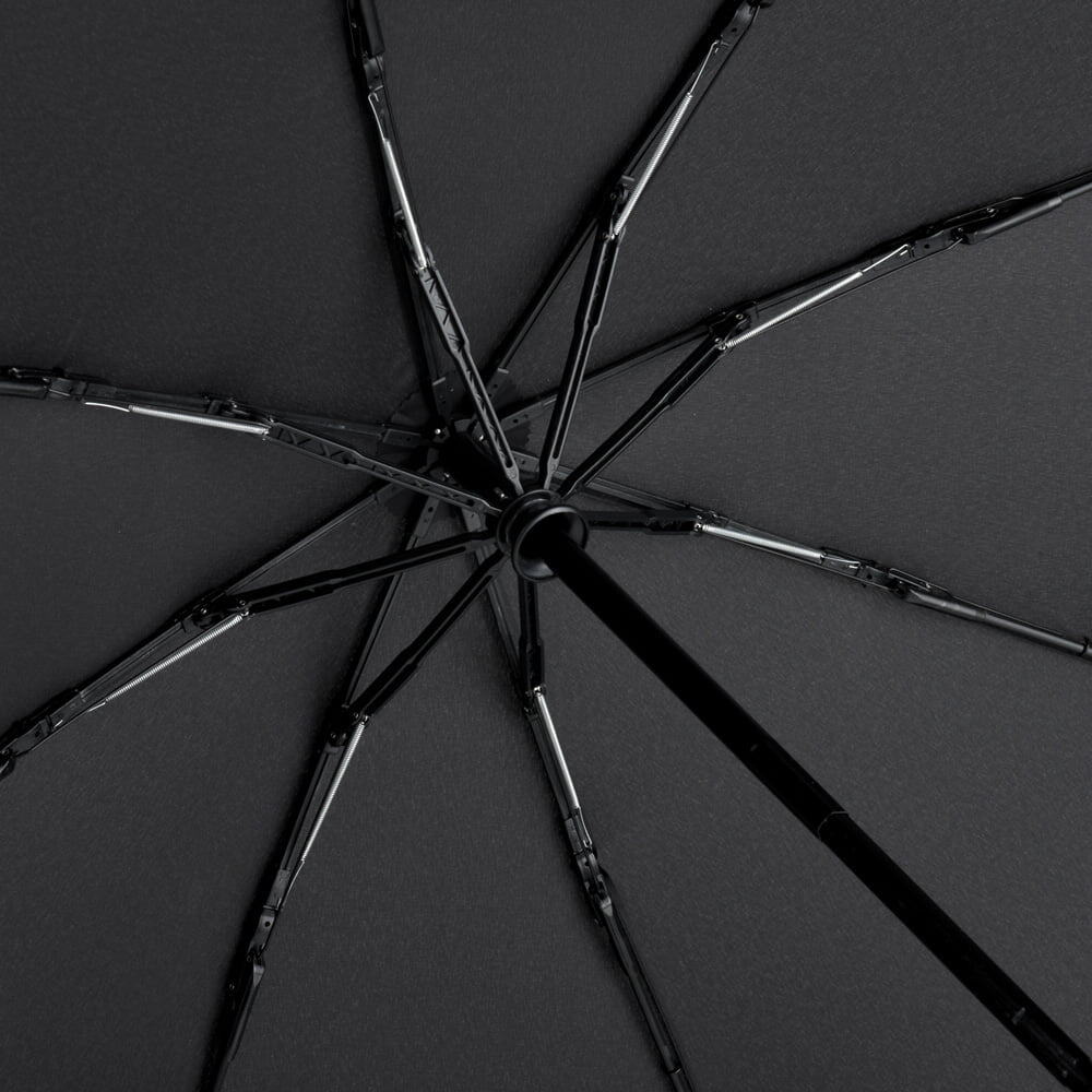 Convenient automatic open/close function for quick opening and closing, high-quality windproof system for maximum frame flexibility in stormy conditions, high-quality rib construction made of fibreglas and plastic, water and dirt-repellent cover properties through original Teflon™ fabric protector, dull silver gear stick handle with promotional labelling option, handle with special finish parts and integrated push button, convenient sleeve with press button
