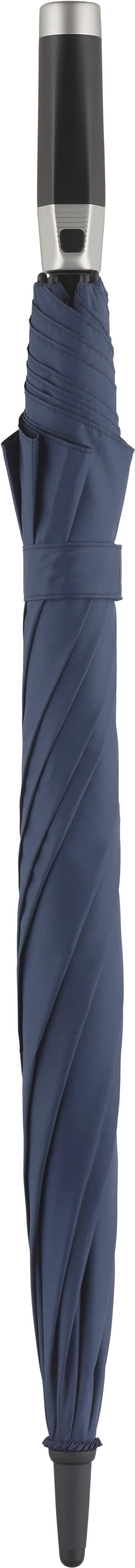 Convenient automatic function for quick opening, high-quality windproof system for maximum frame flexibility in stormy conditions, flexible fibreglass ribs, two-coloured comfortable Soft-Feel handle with integrated push-button, speaker and promotional labelling option, higher corrosion protection due to galvanized steel shaft