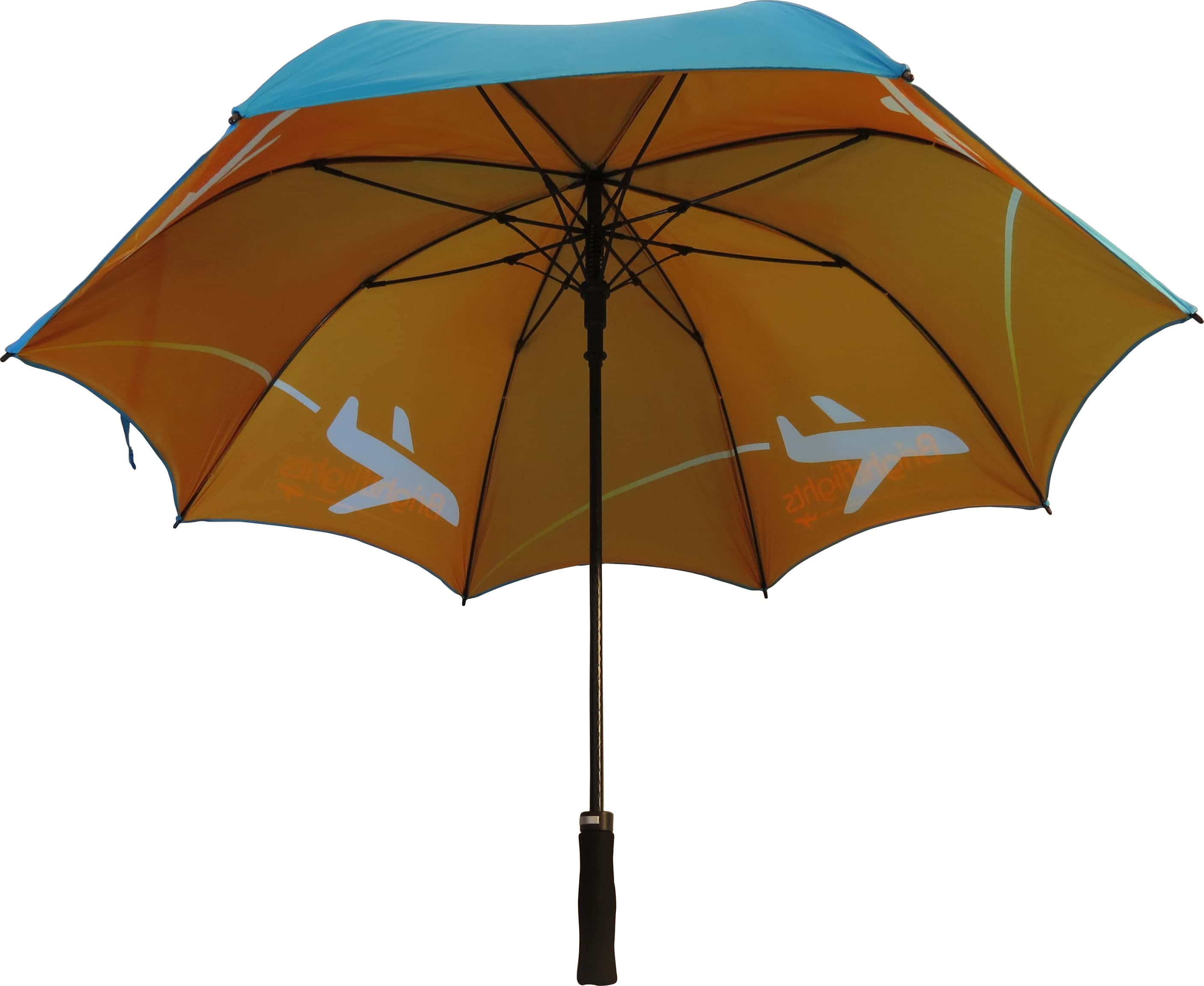Top quality golf size automatic umbrella with bespoke UK handmade double canopy for increased colour combinations and/or print to both sides of the same panel