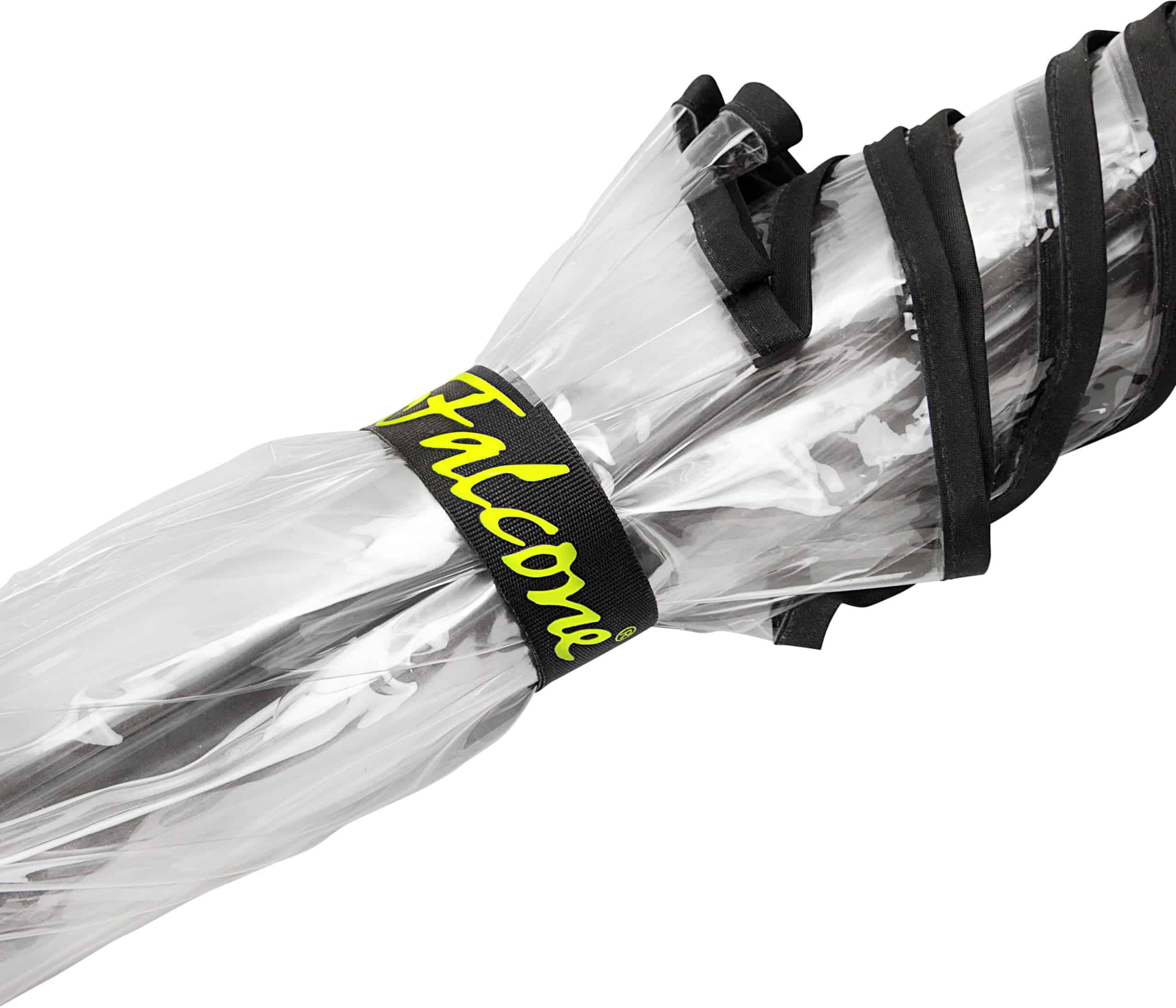 Falcone® transparent PVC umbrella of hight quality. 14 mm black fiberglass shaft and frame, diam. 120 cm, with black piping