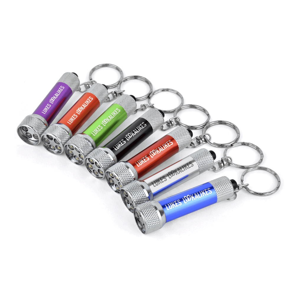 5 led metal keyring torch in a the shape of a miniature torch. Fantastic low cost promotional item suitable for any type of promotion. Batteries included