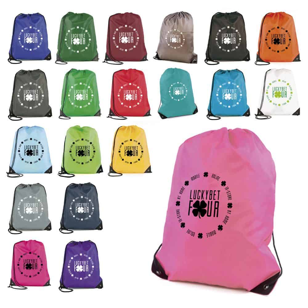Our best selling drawstring bag made from 210D polyester with black PU corners and black string. Suitable for schools, colleges and universities.
