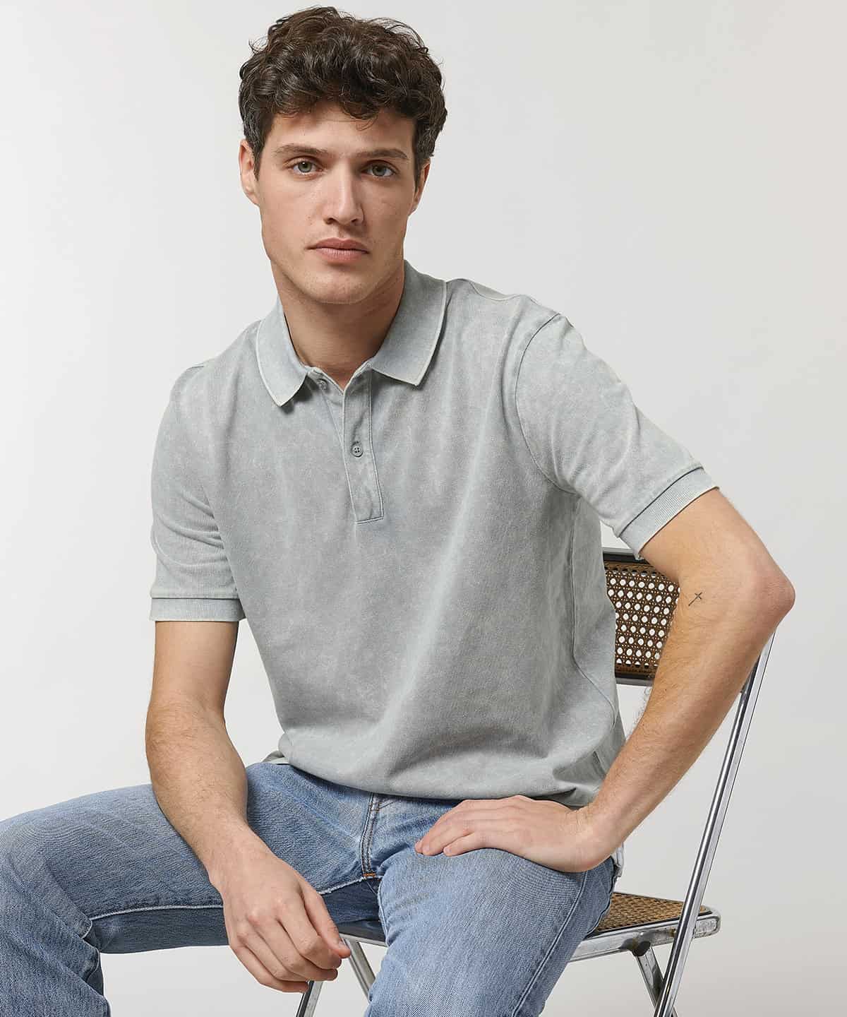 Set-in sleeve. Flat knit rib on collar and sleeve hem. Inside heavy single Jersey back neck tape. Front placket with 2 buttons in matching body colour. Slit at side seams with heavy single Jersey facing. Single needle topstitch at shoulder seams. Bottom hem with narrow double needle topstitch. Garment-dyed product each garment may vary in appearance, colour may bleed, follow our care label. Read carefully the print recommendations.