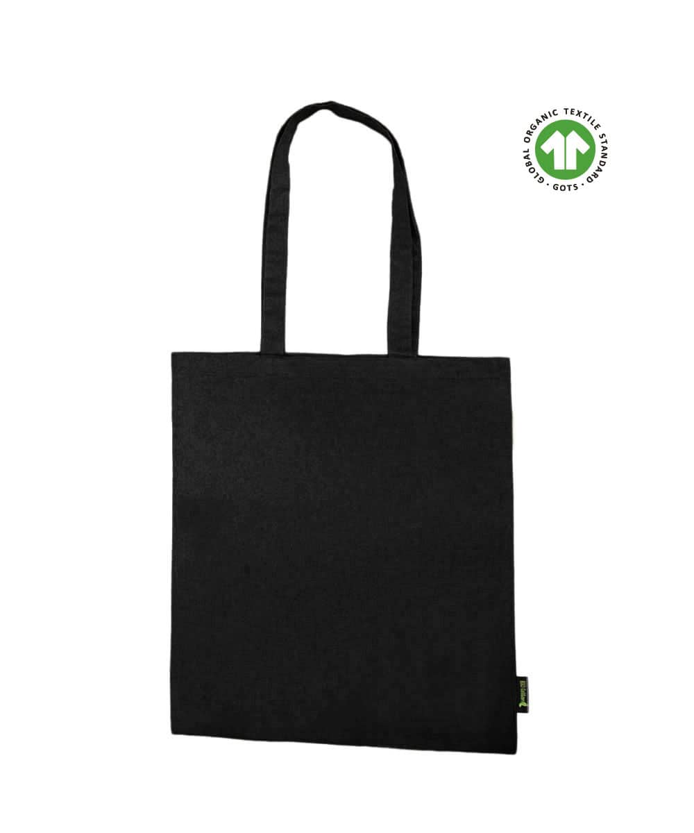 5oz(150gsm) Dyed organic Cotton bag with long handles.