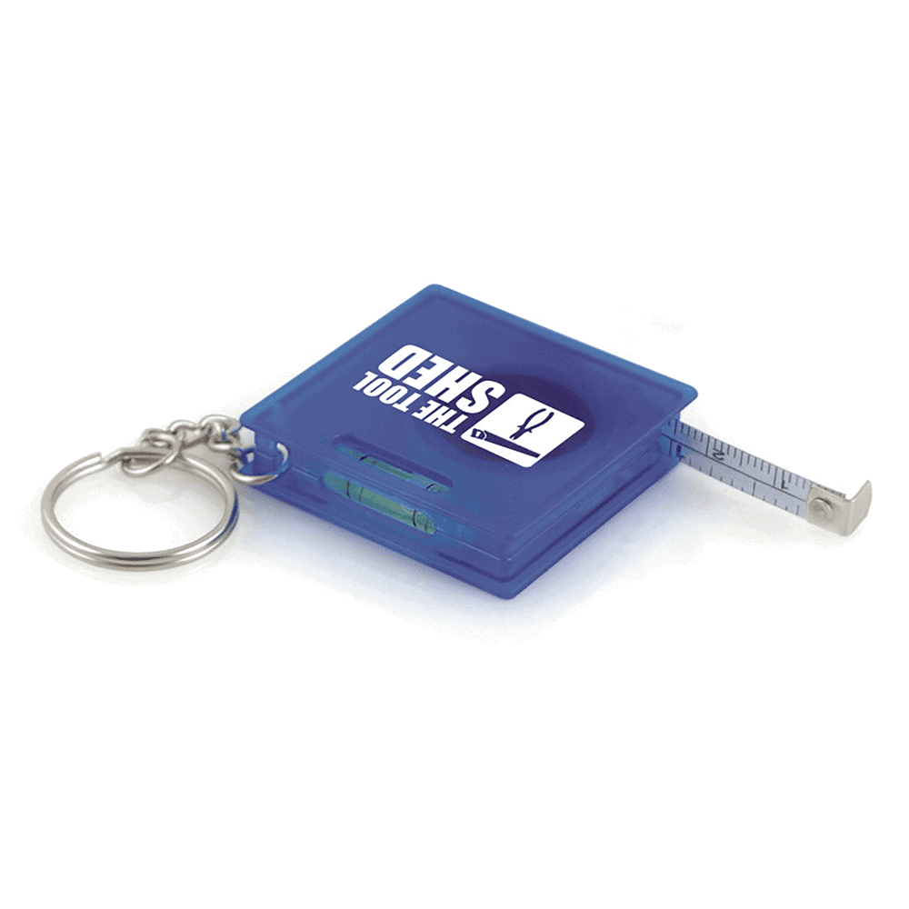 1 Metre plastic tape measure with built-in spirit level. Comes complete with keychain and split keyring attachment.