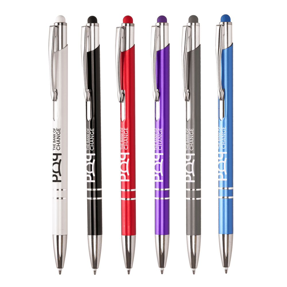 Promote your brand with our sleek stylus ball pen with a recycled aluminium barrel. Choose from a variety of captivating metallic colours to leave a lasting impression while giving a new purpose to waste materials. With its smooth stylus tip, it’s perfect for navigating touch screens with ease. Make a meaningful impact on your audience with this sophisticated promotional tool. Embrace recycled materials without compromising on style. Order now and make a difference with every stroke.