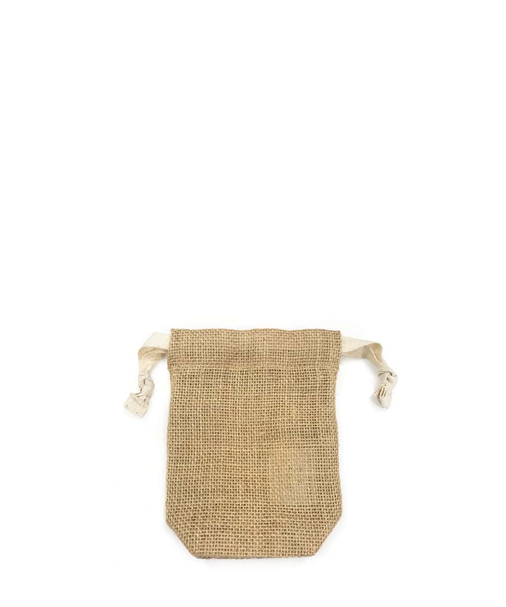 Non-laminated jute pouch with bottom gusset & cotton tape drawstring