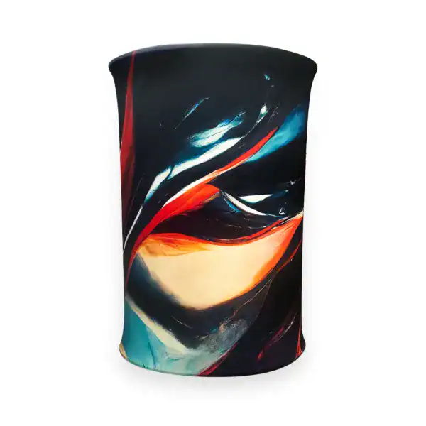 Leave the normal dull counters behind and take advantage of our Soft Touch Fabric Automatic Counter instead. It is both portable and simple to set up, saving you significant time and making it great for trade shows and exhibitions. This is a self-assembling product meaning no tools or effort are required at all. It has its own built-in concertina mechanism so a single touch and the counter will shift into place in less than 10 seconds. Packing the counter away is just as effortless – all you need to do is push the counter down and it will fold flat, ready to pack up. The graphic can also be left attached to the frame when doing this, saving you both time and effort for the next event. We offer full colour print for these counters. So design possibilities are endless and are sure to look great. This will not only improve your display but also create an attraction that is eye-catching. You can even get different graphics allowing you to change the display and be catered for different events. As we print onto 210gsm polyester, its stretch properties allow you to obtrain wrinkle free graphic once it has been applied to the counter. You can even remove the graphic for it to be washed (wash care included) allowing for re-usage. This product is supplied with a carry bag for transportation and safe storage. You also have the option to choose a square shape for this product. Please note that this product is designed for indoor use.