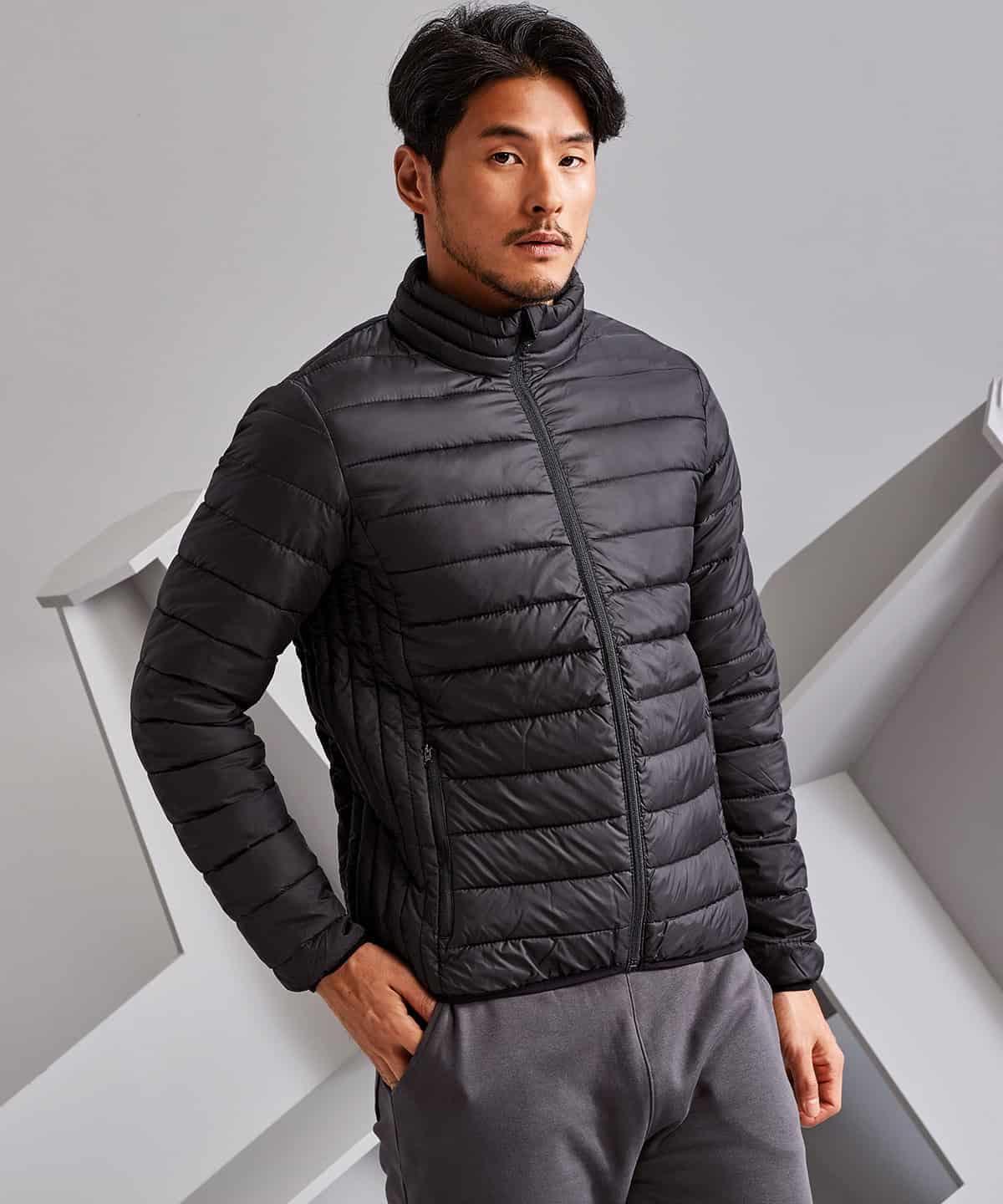 You’ll be in your element in this cool padded jacket with contrast zip and trim. Designed with horizontal quilting inside and out, the narrow vertical side stripes create a super slimline silhouette. With deep internal pockets and a clever zip guard, it’s the smart choice.