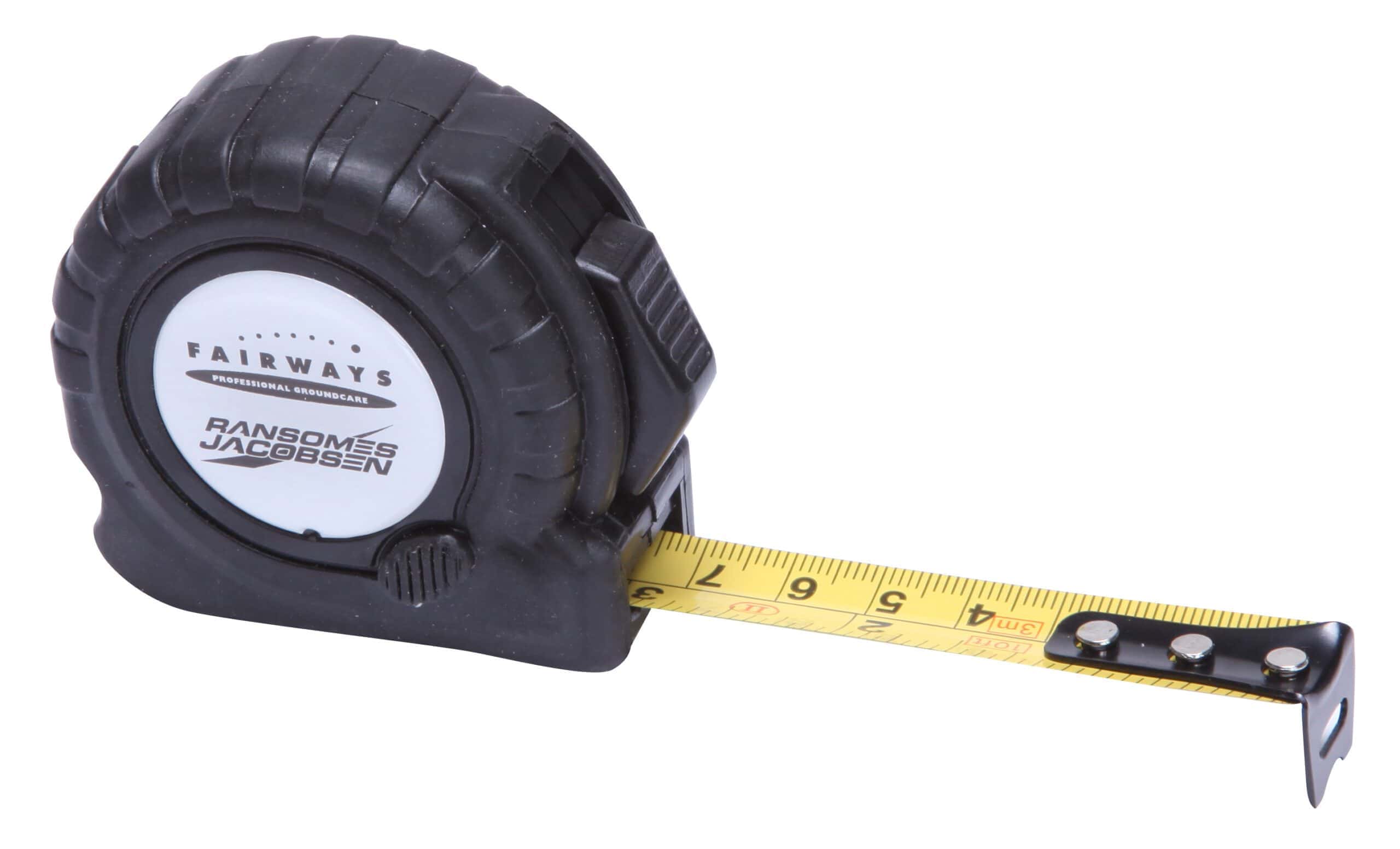 3m/10ft Professional quality tape measure with ergonomic rubber grip. Printed on deluxe dome label. Available in five trim colours.