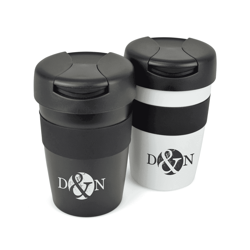 300ml double walled coloured stainless steel take out tumbler with black silicone grip band for comfort when carrying and secure anti-spill sipper. A great alternative to the single-use coffee cup, sure to be used time and again. BPA & PVC free